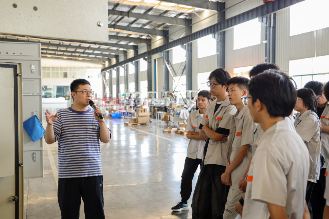公司高度重視此次參觀學(xué)習(xí)活動,將其視為履行社會責(zé)任、回饋教育、發(fā)掘未來人才的重要契機。公司行政人事部和技術(shù)部協(xié)同聯(lián)動,精心設(shè)計了參觀路線和互動環(huán)節(jié),旨在為同學(xué)們提供一個“零距離” 接觸行業(yè)技術(shù)、沉浸式感受大禹文化的寶貴平臺。技術(shù)部特別安排了經(jīng)驗豐富的電氣工程師李飛負(fù)責(zé)產(chǎn)品講解,為同學(xué)們帶來專業(yè)的技術(shù)知識分享。