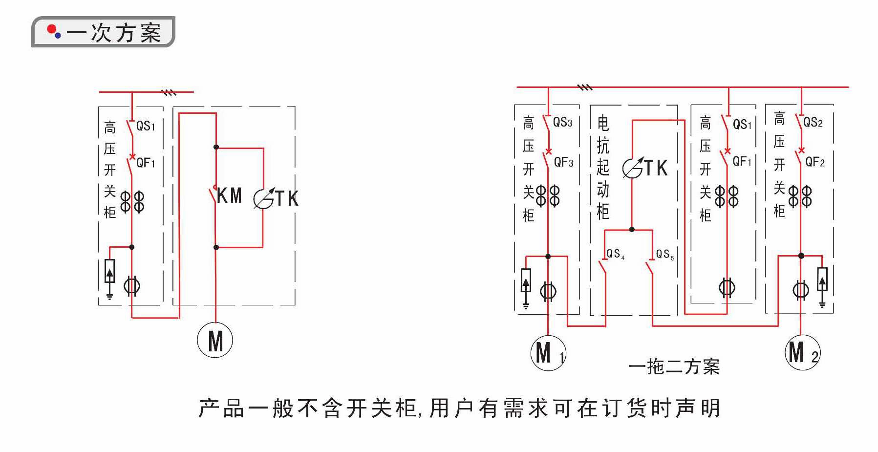 選用電抗器作為降壓限流器件,電機起動時串入一次回路,因電抗的阻抗產(chǎn)生部分電壓降,使電機的端電壓下降,從而起動電流比全壓減?。s為4~5倍的額定電流)。起動完成后,采用旁路開關將電抗兩端短接,電機轉(zhuǎn)入全壓運行。